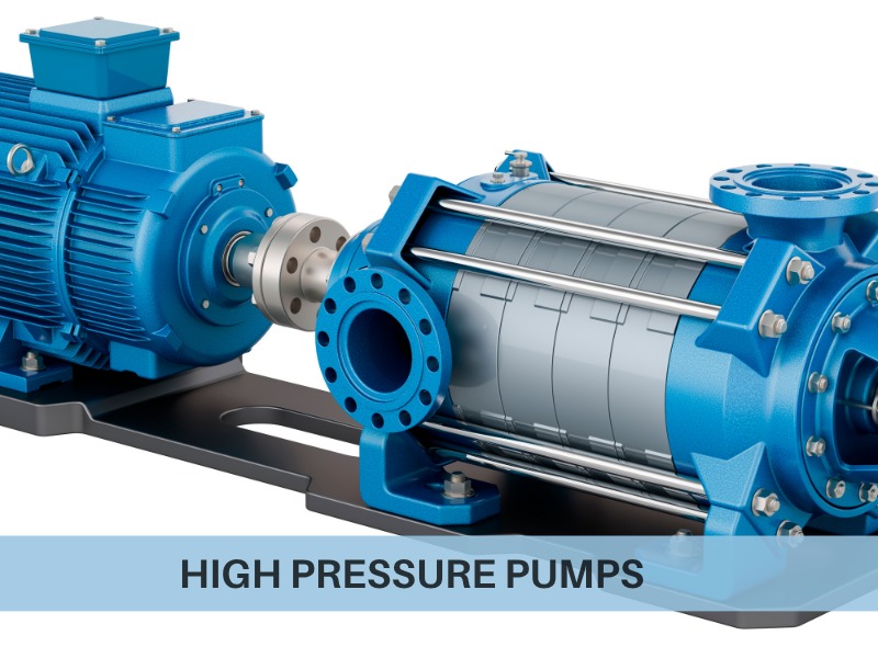 High pressure pumps help deliver water or fluids at the required pressure to support industrial processes, filtration systems, and chemical treatment applications.